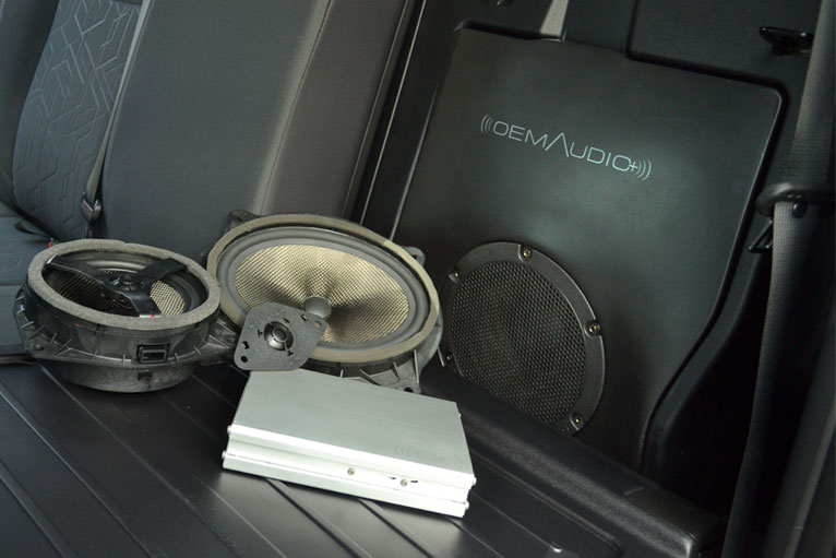 The OEM Audio Plus subwoofer system shares a range of sound with the Front 6 X 9" Woofer, creating a more dramatic effect by delivering ever-present bass without impeding your musics clarity and detail. Subwoofer design is tailored specific for the 2016-Present Tacoma (Dbl Cab) installing seamlessly into driver side rear storage area without any mounting hardware.